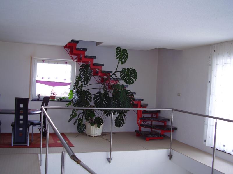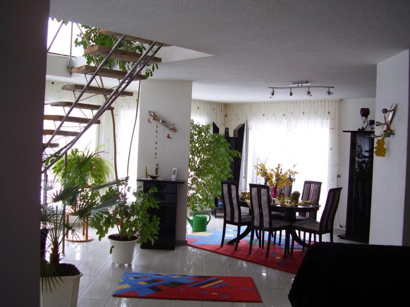 1998 entstand hier ein ganz besonderes Wohnhaus für ganz besondere Ansprüche. Ein Flair von Extravaganz, Großzügigkeit und Luxus strahlen die lichtdurchfluteten Wohnbereiche aus. Durch die massive Bauweise mit dem hoch entwickelten Superwärmedämmstein Öko-domo werden Bestwerte in der Wärmedämmung, Wärmespeicherfähigkeit, im Atmungsverhalten und im Klimaausgleich erreicht. Das mit Ziegeln eingedeckte Satteldach ist voll gedämmt. Die Beheizung des Wohnhauses erfolgt über eine Fußbodenheizung. Die Fußböden sind mit hochwertigen Fliesen und teilweise mit Teppichböden ausgestattet. Im Innenbereich sind alle Wände mit einem Strukturputz versehen. Die großflächigen Isolierglasfenster sind komplett mit Außenjalousien ausgestattet. Der gewendelte Treppenaufgang vom Erdgeschoss zum Obergeschoss wird geschmackvoll mit Edelstahl und Granit gestaltet. Hochwertige Glastüren führen zu den Zimmern. Zwei Bäder, jeweils ausgestattet mit Wanne, Dusche, Waschtisch und WC, stehen zur Verfügung. Das Bad im Obergeschoss verfügt über eine Doppelwanne, im Dachgeschoss über eine Eckwanne mit Luftdüsen zur Massage. Liebhaber des ganz besonderen Designs kommen bei diesem freizügig gestalteten Wohnhaus auf ihre Kosten. Überzeugen sie sich selbst und lassen sie sich von dem ganz besonderen Flair dieses Hauses verzaubern.